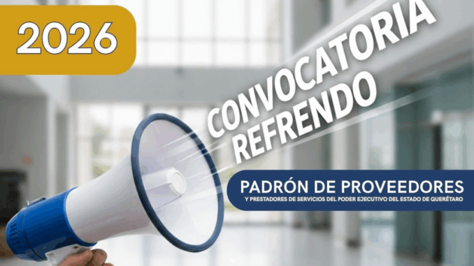 La Oficialía Mayor del Poder Ejecutivo del Estado de Querétaro informó a las personas físicas y morales inscritas en el Padrón de Proveedores y Prestadores de Servicios que ya se encuentra abierto el periodo para realizar el refrendo anual de registro, el cual deberá efectuarse durante los meses de noviembre y diciembre de 2025, teniendo como fecha límite el 30 de diciembre del presente año.