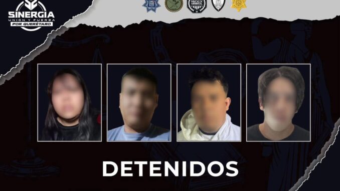 La Fiscalía General del Estado de Querétaro realizó cuatro cateos simultáneos en los municipios de Querétaro y El Marqués, como parte de la estrategia Sinergia por Querétaro, que derivaron en la detención de cuatro personas.