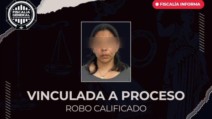 Una mujer fue vinculada a proceso por el delito de robo calificado, tras ser señalada de sustraer joyas de un domicilio ubicado en el Club Campestre, en el municipio de Querétaro, informó la Fiscalía General del Estado.