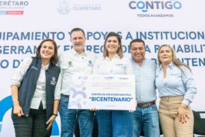 Sostuvo que no hay distancias cuando se trabaja con el corazón, y destacó que entre el equipamiento se incluyen aires acondicionados para las aulas, además de la rehabilitación del CAM Bicentenario, en la cabecera municipal de Jalpan de Serra, obra que permitió intervenir con pintura, cancelería y rehabilitación de las puertas de acceso, además de la cancha con pasto sintético.