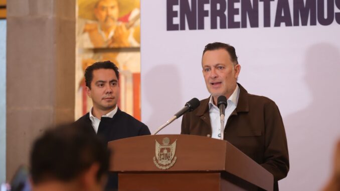 Flanqueado por Felifer Macías Olvera, presidente municipal de Querétaro, Kuri González enfatizó que desde el primer momento de esta contingencia instruyó a su equipo de trabajo a operar en un plan de tres fases.