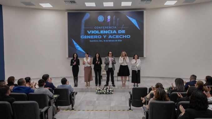 La Fiscalía General del Estado de Querétaro fue sede de la conferencia “Violencia de género y acecho”, impartida por Diana Murrieta, presidenta del colectivo Nosotras para Ellas, como parte de las acciones de sensibilización, prevención y atención integral de las violencias contra las mujeres.