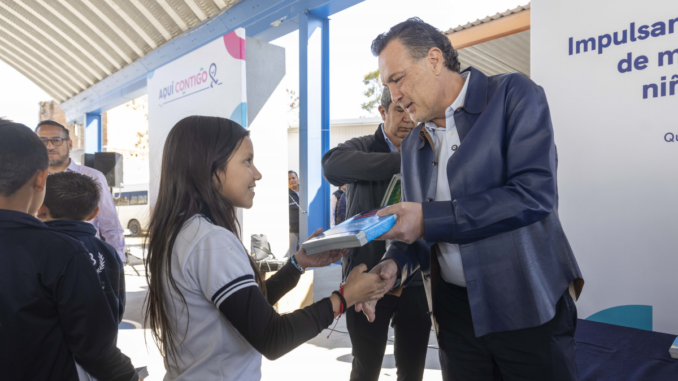 Con el objetivo de fortalecer la identidad queretana desde las aulas y promover la lectura como herramienta formativa, el gobernador Mauricio Kuri González encabezó la entrega estatal del paquete de libros “Defensores de Querétaro”, cuya segunda edición se distribuye de manera simultánea en 150 primarias públicas de los 18 municipios y, por primera vez, también en 260 escuelas primarias particulares.