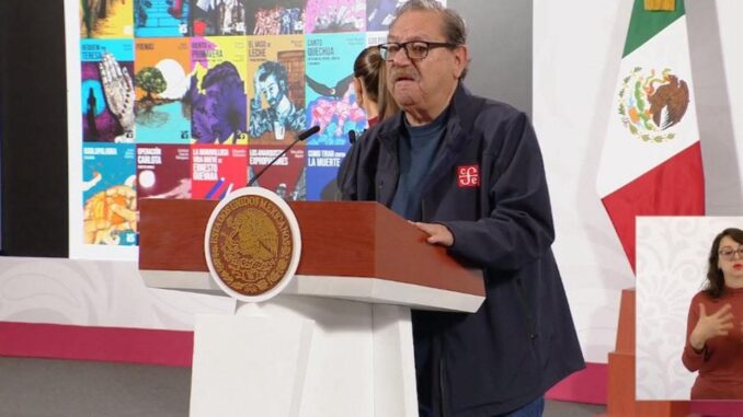 “Dos y medio millones de libros regalados en América Latina, en varios convenios que Paco (Ignacio Taibo II), desde el Fondo de Cultura Económica, ha venido haciendo con gobiernos federales o gobiernos estatales, o incluso municipales de distintos lugares de América Latina y estamos muy contentos. El 17 de diciembre en el Zócalo abrimos las primeras cajas de regalo de 25 para el 25”, destacó en la conferencia matutina: “Las mañaneras del pueblo.