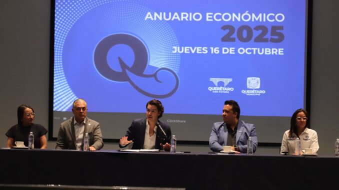 Ante representantes de diversos sectores de la población Sterling Sánchez, explicó que el Anuario Económico Municipal 2025 es un documento integral que consolida y analiza los principales indicadores económicos, sociales y de desarrollo que definen el presente y futuro de la capital queretana.