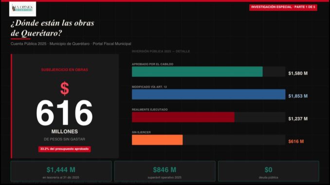 El municipio de Querétaro dejó $616 millones en obras sin construir — y cerró el año con $1,444 millones en el banco