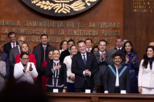 México es una República democrática, representativa, laica y federal que no acepta dictados extranjeros, no admite instrucciones de nadie, no pacta su integridad y jamás su dignidad, advirtió el gobernador, Mauricio Kuri González, quien, junto a la presidenta de México, Claudia Sheinbaum Pardo, presidió la conmemoración del 109 aniversario de la Promulgación de la Constitución Política de los Estados Unidos Mexicanos de 1917.