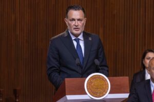 En el acto cívico conmemorativo que congregó a gobernadoras y gobernadores, Kuri González acentuó que los tiempos duros que enfrenta el país y los que se avecinan, demandan el fortalecimiento de dos escudos: la democracia y la justicia. Al respecto, exaltó la convicción antirreeleccionista de la presidenta de México, cuya exigencia democrática tiene su origen en la Revolución Mexicana de 1910, que se concretaría en la Constitución y su postulado central: “Sufragio efectivo, no reelección”, que mantiene plena vigencia.