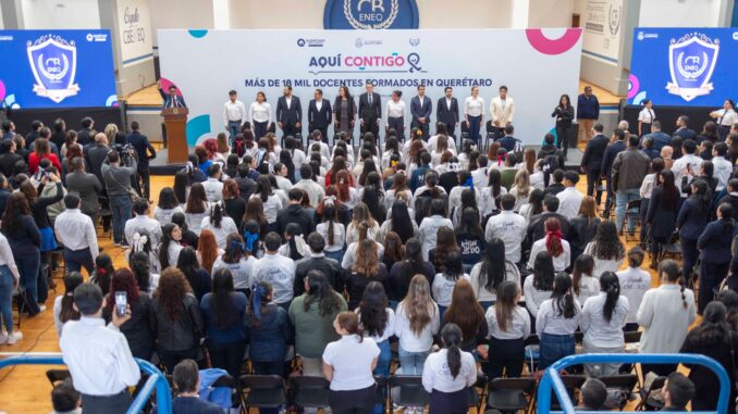 Detrás de todos estos logros, expresó, está su esfuerzo cotidiano, su fortaleza institucional y su compromiso ejemplar con la formación docente. En este tenor, reiteró el llamado a llevar la educación de Querétaro al siguiente nivel, con políticas públicas responsables; profesores capaces y comprometidos; estudiantes que avanzan y concluyen sus estudios, y con una sociedad que cree y apuesta por la educación de calidad.