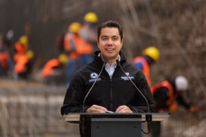 “Nos encontramos dentro de lo que va a ser el nuevo dren Peñuelas. Si ustedes recuerdan antes, aquí había una franja muy angosta y estaba el resto de la vialidad. Estamos dentro de lo que es prácticamente el piso, de los cajones que estamos construyendo aquí en el nuevo dren que tendrán 5.10 metros de altura y 6.6 metros de ancho, por donde correrá el agua y así disminuyendo la velocidad del agua y aumentando la capacidad de captación de los drenes es como estamos convencidos que se va a reducir de un 60 a un 70 por ciento las afectaciones o el riesgo que pudiera generar las lluvias en 2026”.