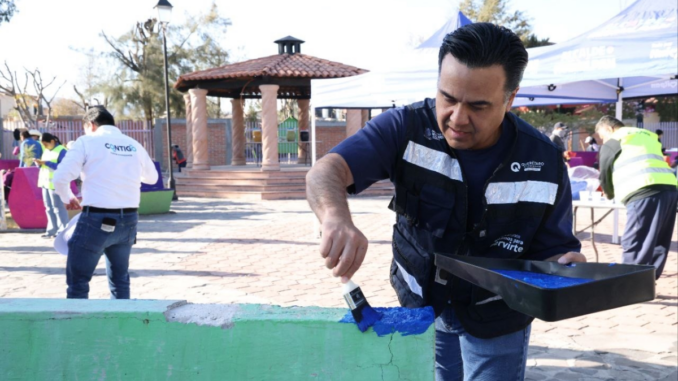 Acompañado por el alcalde de Huimilpan, Jairo Morales, y el procurador del Medio Ambiente, Luis Peña, el secretario reafirmó que la calidad de vida de las familias queretanas empieza por recuperar el brillo de sus plazas y parques.