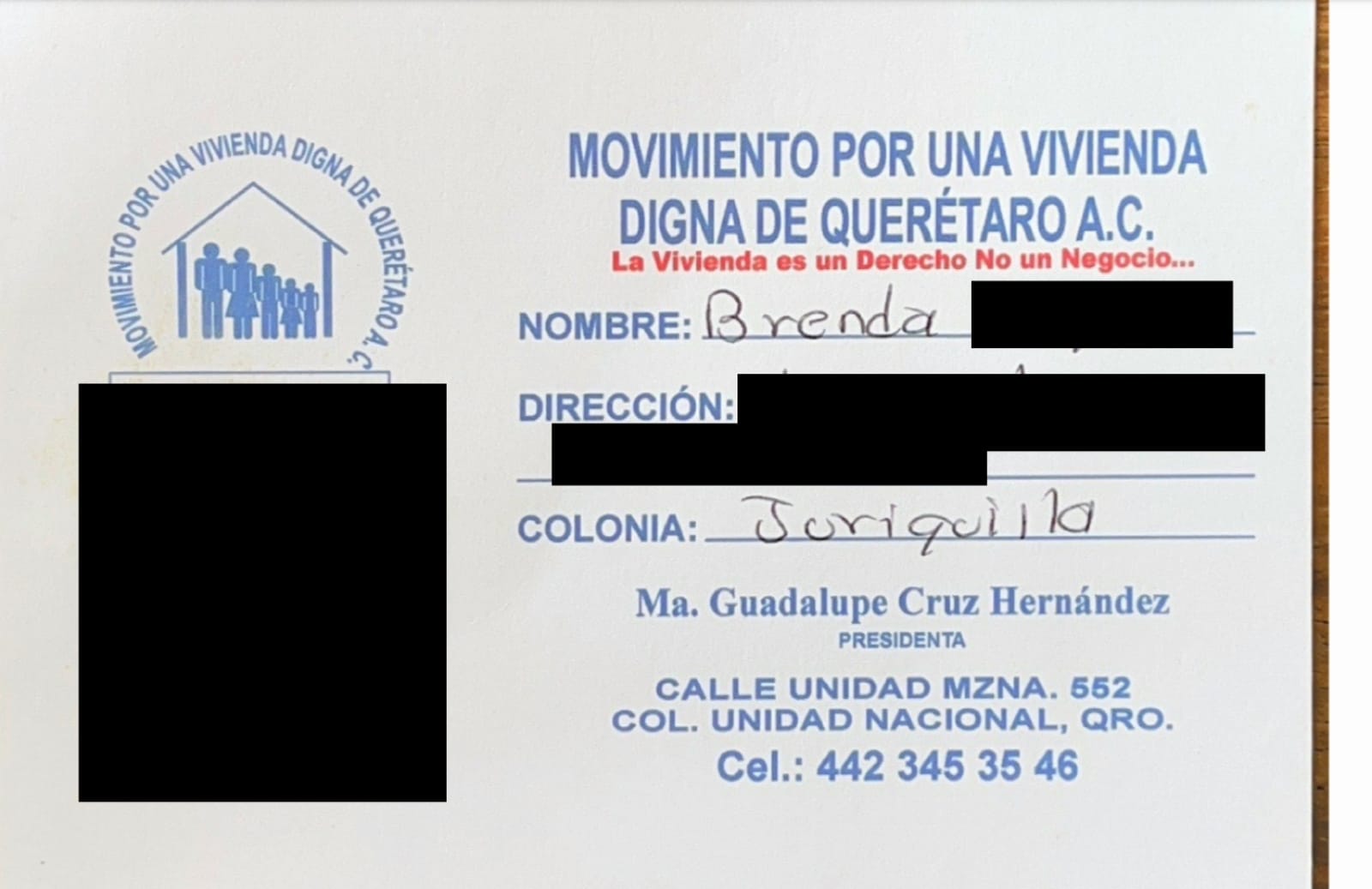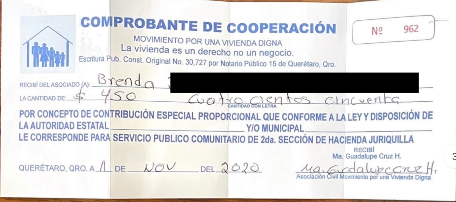 A través de una asociación denominada Asociación Movimiento por una Vivienda Digna de Querétaro, AC, diversas personas adquirieron un predio en mensualidades.