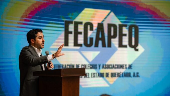 En la ceremonia por el 42 Aniversario de la Federación de Colegios y Asociaciones de Profesionistas del Estado de Querétaro (FECAPEQ), el senador Agustín Dorantes Lámbarri reiteró que para defender el crecimiento y desarrollo de Querétaro, se requiere el trabajo diario de su gente, y en este caso, de la experiencia y especialización constante de las y los profesionistas colegiados.