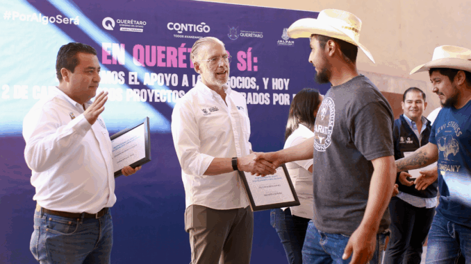 Del Prete informó que se benefició a 20 migrantes queretanos repatriados, 23 comerciantes del Corredor Valle Verde, 26 emprendedores del Instituto Queretano del Emprendimiento y la Innovación (IQEI) y 13 mujeres del Sistema de Economía Circular de Neaton.