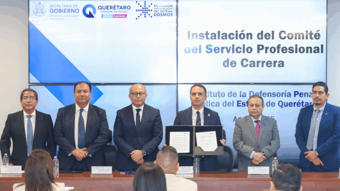 El titular de la Defensoría Penal Pública, Fernando Sámano Álvarez, informó que en febrero se publicó en el periódico oficial La Sombra de Arteaga el Reglamento del Servicio Profesional de Carrera, lo que permitirá un crecimiento profesional continuo para defensoras y defensores, con capacitación permanente. Añadió que el comité contará con representación ciudadana, a través del director de la Facultad de Derecho de la Universidad Autónoma de Querétaro, Edgar Pérez González, con el fin de reforzar la transparencia y el vínculo con la sociedad.