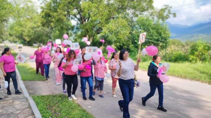 Esta actividad inició desde el albergue escolar y culminó en la plaza principal de la localidad. Durante el trayecto se promovieron mensajes alusivos a la prevención del cáncer de mama.