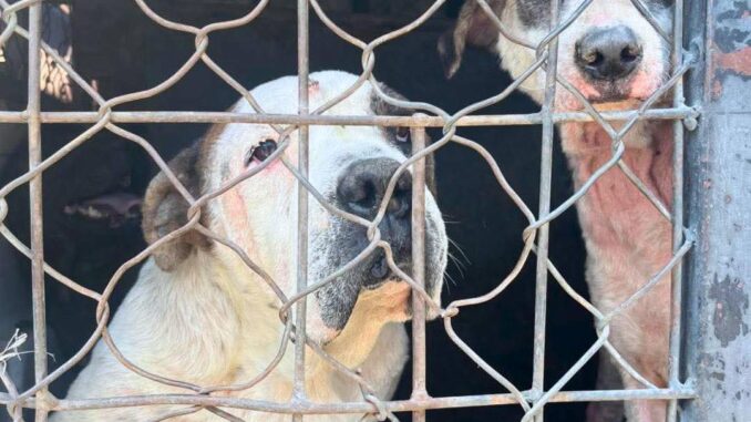 Durante la intervención, las autoridades localizaron a los perros —de distintas edades y razas— en condiciones de hacinamiento, con signos de dermatitis y con problemas de higiene y salud.