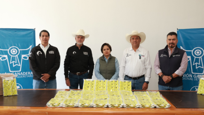 El secretario de Desarrollo Agropecuario, Rosendo Anaya, encabezó la entrega de 20 mil aretes identificadores para mejorar la trazabilidad y el control de la movilización de ganado en Querétaro, como parte del fortalecimiento al Registro Electrónico de Movilización (REEMO).