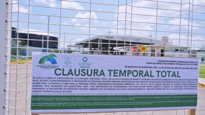La planta de separación de basura que opera la empresa Broquers Ambiental no ha cumplido diversas deficiencias, entre ellas, el incumplimiento de horarios y condiciones normativas por lo que permanece clausurada, confirmó Felifer Macías Olvera, presidente municipal de Querétaro.