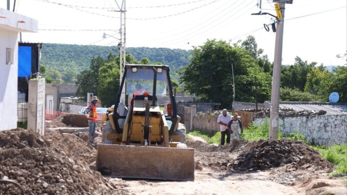 Por otro lado, en la comunidad de Puerta del Tepozán se construyen banquetas en el camino Bordos Cuates con el fin de mejorar la movilidad, la seguridad peatonal, ciclista y vehicular, generando un entorno más ordenado y seguro beneficiando a 256 personas de forma directa y a 422 indirectamente con una inversión de 2.1 millones de pesos.